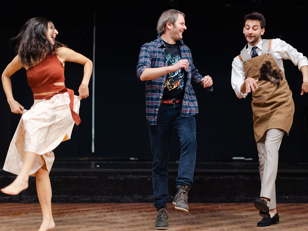 Ballroom è un’esperienza di comunità in cui persone di diverse generazioni si riuniscono attraverso la danza. La sala da ballo come contenitore della memoria, amori e passioni vissute, oppure semplicemente sfiorati. Gli spettatori compiono un viaggio nei loro ricordi grazie all’empatia che si crea con gli interpreti. E così, la semplice geometria di un luogo si trasforma in una sala da ballo, che qui si arricchisce di elementi pop e di richiami al mondo dello speed dating.