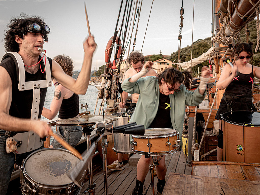 Avogadro Dr. Samba è un gruppo di percussionisti under 30 fondato alla Spezia nel 2022, diretto da Davide Sinigaglia e composto da sette musicisti. Attraverso percussioni, synth e tastiere, il gruppo esplora sonorità che spaziano dalla musica elettronica al punk. Il Dottor Avogadro crea mostri sonori, passando da atmosfere gotiche a ritmi latini. Il concerto è arricchito da una dimensione teatrale, dove le creature agiscono, recitano e si trasformano sotto la guida del loro creatore.